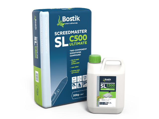 Bostik Screedmaster SL C500 Ultimate – Two-part smoothing compound that incorporates a blend of cements and aggregates combined with special additives.